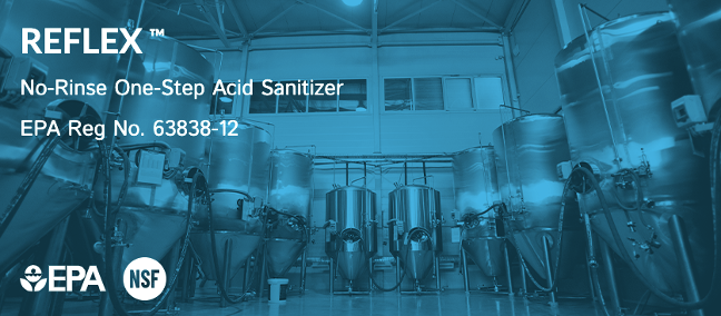 Reflex™ belongs to a new generation of acid sanitizers formulated for the food, beverage, and dairy industries. It’s a no-rinse acid sanitizer for CIP and COP pipeline, silo, tank, and equipment cleaning and sanitizing processes that helps conserve water.